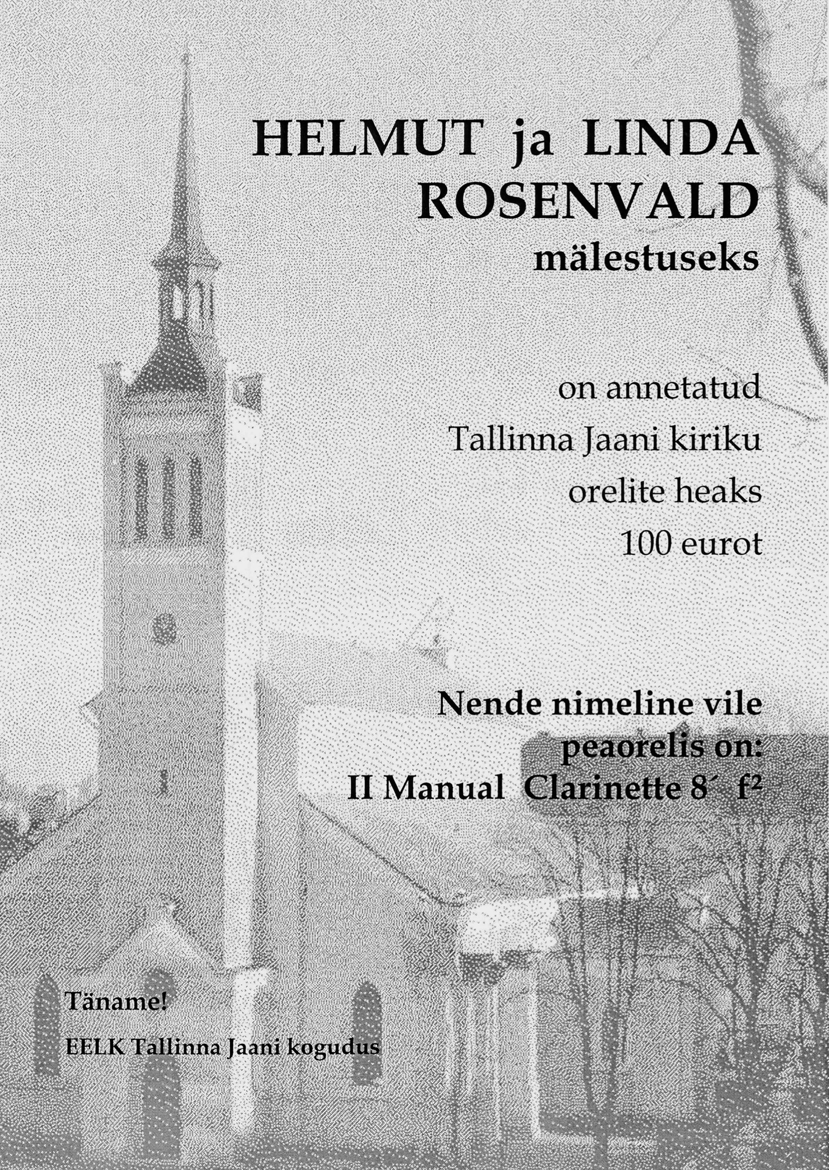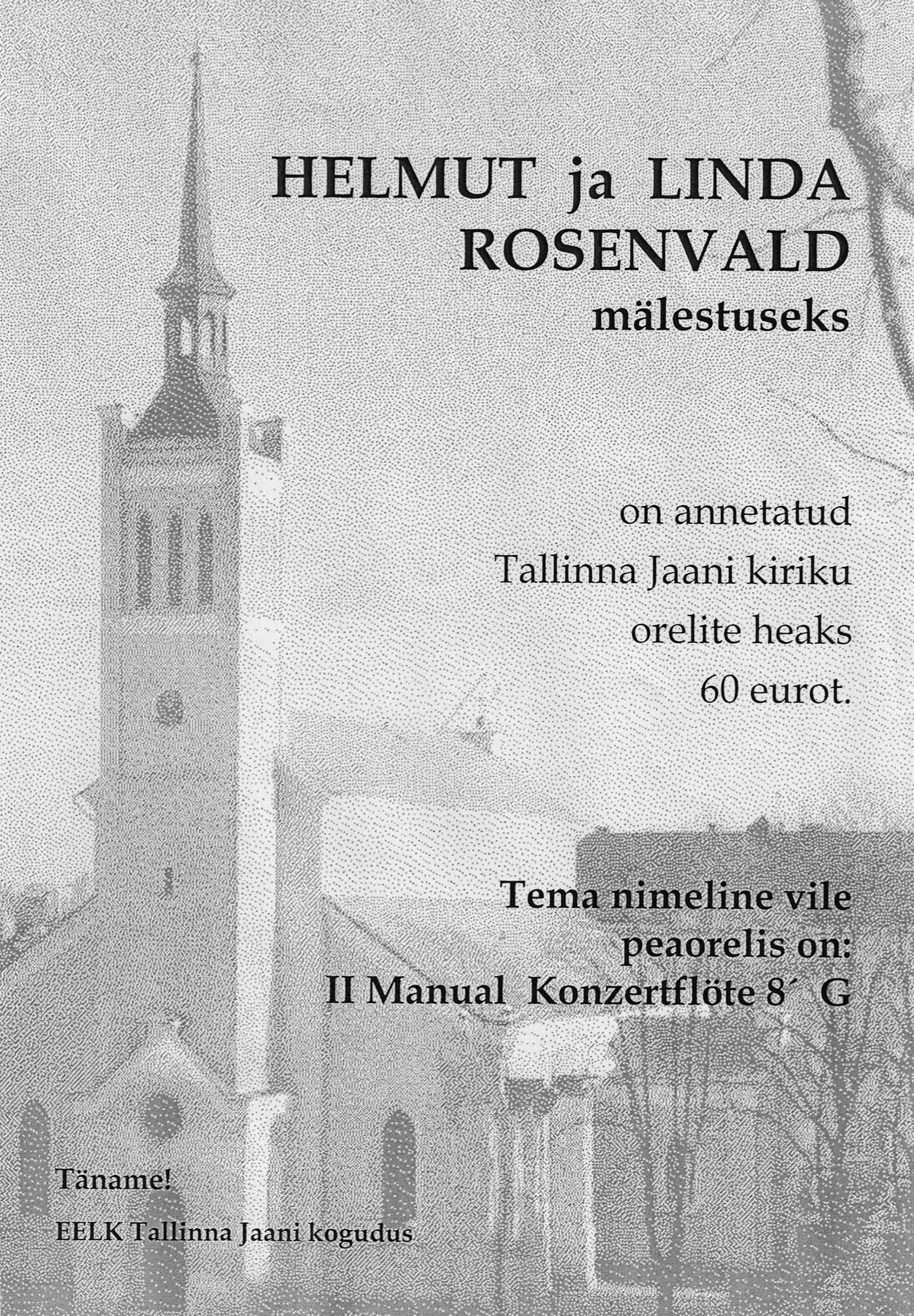 These are my parents Helmut Rosenvald (1929-2020) and Linda-Luule Kollom (1928-2015) Mom added another first name, Luule, because she liked it better in everyday life. My parents got married in Estonia, and if I describe it in the Estonian language: Minu vanemate abielu sõlmiti 26. detsembril 1954.a. Tallinna Jaani kirikus. My parents, Helmut and Linda Rosenvald's final resting place is in Estonia: Pärnamäe cemetery/Pärnamäe kalmistul Helmut ja Linda Rosenvaldi nimeliste orelivilede annetused Tallinna Jaani kiriku orelite heaks