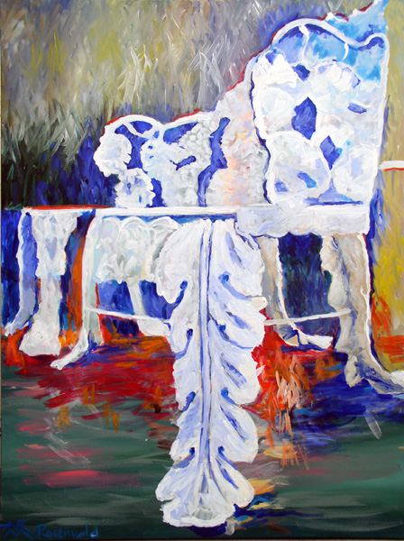 My bench paintings are from various places, and those paintings symbolize little pieces of my life journey, focusing on traveling and different areas all over the world. I find the bench to be a symbol of stillness. The empty bench as a subject is evocative of loss, and my bench note cards are often used as sympathy cards.